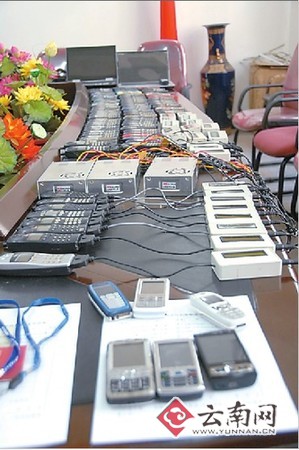 現(xiàn)場查獲了3臺筆記本電腦,一臺臺式電腦,37部短信群發(fā)器,170余部用于連接“土炮”發(fā)短信的各型手機,手機中均裝有短信卡,用于犯罪時轉(zhuǎn)賬用的40余張各個銀行的銀行卡、存折。3000余張他們自己設(shè)計制作的某某名牌牙膏商品銷售刮刮獎卡、2000余張香港某某集團刮刮獎卡。10余部自己使用轉(zhuǎn)接電話的手機。手機卡100余張等贓物。