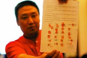 昨日,諾基亞經(jīng)銷商代表在京召開(kāi)新聞發(fā)布會(huì)抗議諾基亞高額罰金,一經(jīng)銷商代表會(huì)上展示聯(lián)名狀。本報(bào)記者 周曉東 攝
