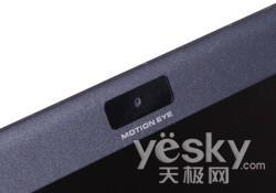 前面我們已經(jīng)對它頂蓋材料做過介紹,這種碳纖維選材結合LED背光能夠讓屏幕做得非常纖薄,側面厚度僅有5毫米。屏幕邊框同樣也采用這種合成材料,邊框設計很窄,在上方增加了六個膠皮墊腳,起保護屏幕的作用。在屏幕上方設計了一顆攝像頭,其有效像素為640×480,可以滿足一般網(wǎng)絡視頻需求。