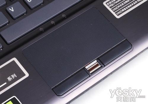 觸摸板區(qū)域設計寬大,表面附了一層采用了磨砂處理的塑料材質,同時為了增加手感表面還加了一些微小凸點的膜。左右按鍵被設計成狹長的外形,用手按下去的觸感非常好,彈性好并且省力。雖然還是不如一些商務本的指點桿操控,不過對于一些初級用戶來說,還是觸摸板更容易使用。另外,左右按鍵中加入了指紋識別器,對于一些比較注重安全的商務用戶來說還是非常有必要的。
