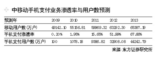 東方證券撰寫報(bào)告認(rèn)為這種應(yīng)用于特定的零售、電子商務(wù)和交通等領(lǐng)域的小額現(xiàn)場(chǎng)支付場(chǎng)景,具有快捷、便利、安全三大客戶價(jià)值。“目前,中移動(dòng)已在10省范圍內(nèi)開展手機(jī)支付業(yè)務(wù)的試商用。調(diào)查顯示,市場(chǎng)對(duì)該業(yè)務(wù)有較強(qiáng)關(guān)注度,移動(dòng)各營業(yè)廳中,對(duì)手機(jī)支付業(yè)務(wù)的問詢度日趨上升;而在已開通手機(jī)支付業(yè)務(wù),實(shí)現(xiàn)特約商戶購物和搭乘交通工具的城市中,用戶對(duì)該業(yè)務(wù)反響良好,對(duì)該業(yè)務(wù)發(fā)展前景看好!