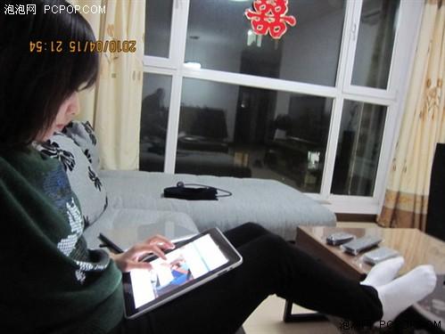 使用iPad時,視覺角度完全取決于自己的雙腿彎曲程度……EeePC屏幕轉軸最大是120度的開合度,可以隨意調節(jié)成適合自己的角度。