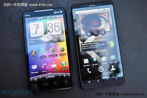 圖為摩托羅拉Droid X對比HTC EVO 4G