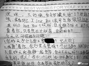 中學(xué)生,甚至是小學(xué)生的“早戀”已不是什么值得大驚小怪的事情了,然而在看了網(wǎng)友“typhooncome”于日前發(fā)出的“雷死人的六年級小學(xué)生的字條”一帖中,幾張兩個(gè)六年級小學(xué)生互相“傳遞愛語”的字條后,記者還是著實(shí)被雷了一把,其中的內(nèi)容和用詞就如發(fā)帖者所說的一樣“非常非常雷人”。
