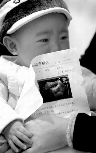 昨日下午,看到新聞報道,楊麗和丈夫也急忙將兒子帶到醫(yī)院做了彩超檢查。檢查結(jié)果顯示,孩子的左輸尿管下端有一個0.2cm×0.3cm的小結(jié)石。