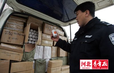 “他們稱自己是快郵公司的,幫一位貨主往石家莊郵局送貨!泵窬顕(guó)宏說,他們檢查發(fā)現(xiàn),該車?yán)氖羌耐珖?guó)各地治療風(fēng)濕、關(guān)節(jié)炎、定喘等癥狀的保健藥品。通過直觀判斷,這些藥瓶質(zhì)地粗糙,疑似假藥,兩民警立即將情況上報(bào)大隊(duì)長(zhǎng)張紅慶。