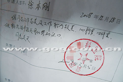 更大的意外還在后面,昨日(1月5日),當(dāng)徐本剛來到醫(yī)院,何某在為他蓋章的同時(shí),簽下了以下意見:該同志工作態(tài)度及工作能力較差,心胸窄,心計(jì)重,但能熟練掌握運(yùn)用《勞動(dòng)法》。