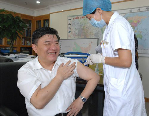 作為我國第一個甲型H1N1流感疫苗受試者,衛(wèi)生部部長陳竺8月11日下午接種第二針(據(jù)衛(wèi)生部網(wǎng)站)