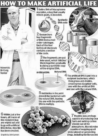 本月20日,美國(guó)科學(xué)家宣布,他們?cè)趧?chuàng)造人工合成生命的道路上又邁進(jìn)了一步,世界首例“人造生命”,即完全由人造基因控制的單細(xì)胞細(xì)菌誕生。他們將它命名為“人造兒”。該項(xiàng)實(shí)驗(yàn)表明,新的生命體不一定要通過“進(jìn)化”來完成,也可以在實(shí)驗(yàn)室里“被創(chuàng)造”。消息傳出,立即引起社會(huì)各界的強(qiáng)烈反響。許多科學(xué)家對(duì)這一成果給予了積極評(píng)價(jià),但也不乏憂慮之聲。