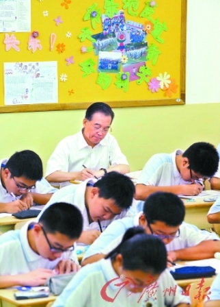 “溫總理與學(xué)生一起上課”圖片中只有總理坐姿端正引熱議