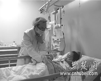 與此同時(shí),十堰市人民醫(yī)院迅速向該市甲流防控指揮部匯報(bào)此事。十堰市衛(wèi)生局局長(zhǎng)曾文華等連夜組織專家會(huì)診,會(huì)診結(jié)果為:患者呼吸衰竭、呼吸性酸中毒并代謝性堿中毒、中毒性肝損害、多臟器功能不全等癥狀。采取咽拭子送檢呈陽(yáng)性,確診為“甲流”患者;颊唠S時(shí)有生命危險(xiǎn)!十堰市立即向省衛(wèi)生廳報(bào)告。