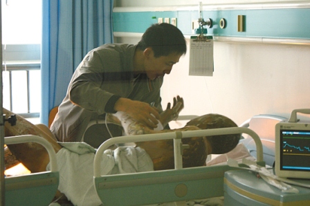 附近一金屬加工廠保安告訴記者,上午11時許,一名工人從福祥工廠的辦公室里走出來,隨后去樓上廠房拿了一桶天那水下樓,便把液體往身上倒。 “他一句話沒說,拿著打火機(jī)點(diǎn)燃了自己!碑(dāng)時有幾個保安看到曾撲上去要搶過他手里的打火機(jī)卻未能制止。該工人當(dāng)即全身都是火,保安人員遂用滅火器撲滅。自焚工人立即被送往龍崗區(qū)中心醫(yī)院。記者從燒傷科了解到,該工人身上45%重度燒傷,暫時沒有生命危險。