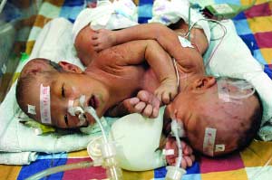 胸腹相連,兩個小生命緊緊地連在一起。只是他們并不知道,父母和醫(yī)生正為他們的命運擔憂。