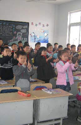 上午第二節(jié)課后,蕭山區(qū)寧圍鎮(zhèn)第二小學(xué)的眼保健操開(kāi)始了:音樂(lè)響起,孩子們起立,伸出兩根食指,并列放在眼前。