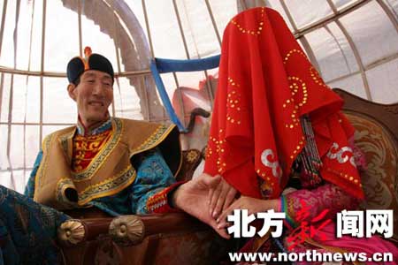 2007年初,身高2.36米的世界自然生長第一高人鮑喜順經(jīng)人介紹與夏淑娟相識,隨著感情的加深,同年3月26日,二人在赤峰市正式登記結(jié)婚;7月12日在鄂爾多斯市成吉思汗陵舉行了被譽(yù)為世界最高的婚禮。