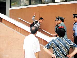 “和叔叔走,叔叔帶你回家。”民警耐心規(guī)勸小濤,但是小濤根本不聽,“不,我就不回家,我的事情你們不用管,你們真愛管閑事!”民警和兩名保安連拉帶拽,費(fèi)了很大的勁將小濤拖到樓里。在樓梯上,小濤仍不停地對民警又打又踹,折騰了好半天,民警的胳膊也被他抓出了血道。