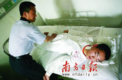 1994年,從兒子在卡車上摔下癱瘓那一天起,黑龍江伊春市湯旺河區(qū)二清河林場(chǎng)的丁國(guó)福就開始了漫長(zhǎng)的奔波。為了讓兒子早日站起來(lái),丁國(guó)福不惜傾家蕩產(chǎn),甚至當(dāng)乞丐。昨日,人稱“丁百萬(wàn)”的丁國(guó)福帶著兒子來(lái)到廣州解放軍四二一醫(yī)院求醫(yī)。