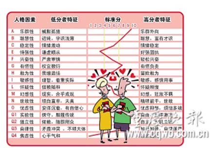 目前流行的“性格婚檢”,主要包括“卡特爾16人格因素問卷”等。這一測試體系是美國心理學家卡特爾運用一系列嚴密的科學手段研制出的,目的是認清自己和對方。