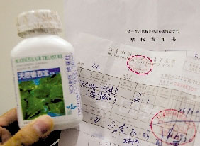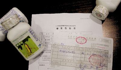 7月9日,消費者張先生投訴稱,他和朋友在位于遠(yuǎn)大路1號的金象大藥房購藥時,店員極力推薦了名為“納瑞仕番茄紅素膠囊”的“保健品”。起初,他和朋友并沒有動心,但聽到店員說可以“抗氧化、美容養(yǎng)顏”時,遂決定購買一盒回去試用。買回后,張先生卻發(fā)現(xiàn)這個番茄紅素膠囊根本不是保健品,而是一種普通食品。因為產(chǎn)品標(biāo)簽上標(biāo)的是食品衛(wèi)生許可證“溧衛(wèi)食字(2006)第0763號”。記者在張先生提供的發(fā)票上看到,在蓋著“北京金象大藥房醫(yī)藥連鎖有限責(zé)任公司”公章的北京市商業(yè)企業(yè)專用發(fā)票上,商品名稱一欄赫然填寫著“保健品(納瑞仕番茄紅素膠囊)”。