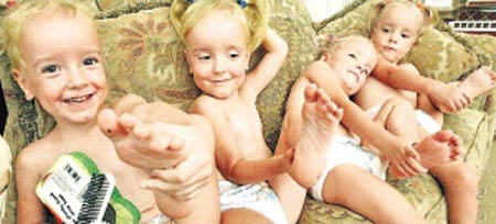 自從采取這一“腳趾頭”文身點痣的區(qū)分法后,布里德拉夫再也沒有搞錯過同卵四胞胎女兒的身份。即使她們的外貌再相似,只要她們伸出自己的小腳丫,就會泄露出各自的身份秘密。謝莉高興地說:“我們現(xiàn)在再也不會搞錯她們的身份了!