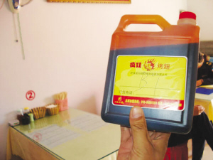 “我們是正規(guī)加盟店!眻(zhí)法人員來到位于桂林路附近的一家變態(tài)烤翅店,經(jīng)理拿出所有的開店和加盟手續(xù),稱他們手續(xù)齊全。執(zhí)法人員讓該經(jīng)理拿出了制作變態(tài)烤翅的調(diào)料——“BT油”,他拿出了一個5升的小白桶。該經(jīng)理說,他們加盟的時候,北京總店就給他們提供這種調(diào)料,總店稱是“商業(yè)秘密”,從來沒透露過是什么制成的。他們也用其他調(diào)料代替過,但做出來的雞翅都不如用“BT油”做的好吃。