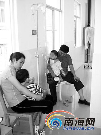 隨后,記者迅速驅(qū)車趕往五指山市采訪。在海南省第二人民醫(yī)院傳染科手足口病隔離區(qū)的病房里,記者見(jiàn)到了報(bào)料人王先生和他正在輸液治療的兒子。3歲的小王長(zhǎng)得十分可愛(ài),可是他的手掌上、腳上和口腔中卻長(zhǎng)出了不少膿點(diǎn)。