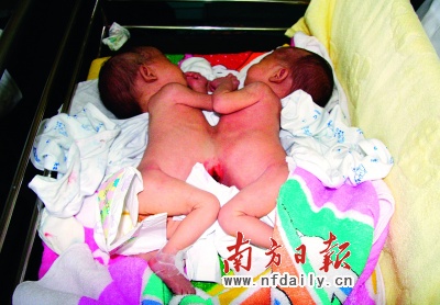 昨天,一對出生83天的連體女嬰(如右圖,丁玎向雨航攝),經過3小時20分鐘的手術,在深圳市兒童醫(yī)院順利進行了分離。據悉,這是市兒童醫(yī)院順利完成的第2例連體嬰兒分離術,也是深圳市第2例。