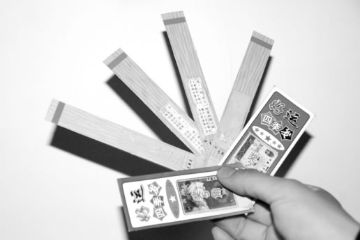 該棚子內(nèi)除了抽簽外,還有大量的精美“小賭卡片”,上面印制著5角、1元和2元人民幣圖案,還寫著“20元以上獎學(xué)金到廠家兌獎,20元以下獎學(xué)金由小賣部支付,即開即樂”等字樣。