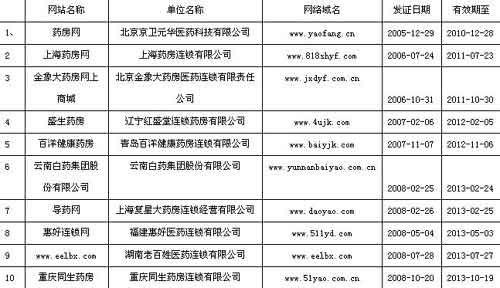 中新網(wǎng)12月8日電 今天上午,國家藥監(jiān)局新聞發(fā)言人顏江瑛通報了截止到2008年12月8日,國家藥監(jiān)局批準(zhǔn)的向個人提供非處方藥品的10家互聯(lián)網(wǎng)藥品交易網(wǎng)站。(據(jù)中國網(wǎng)文字直播整理)