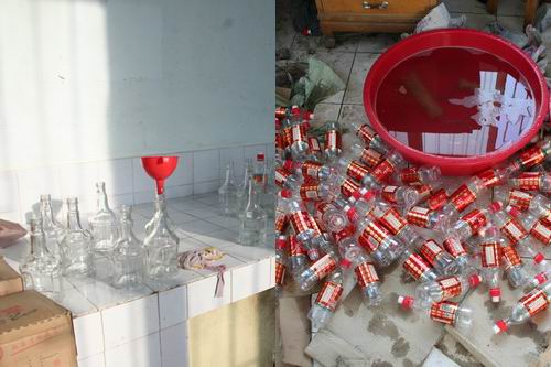 經(jīng)審訊,自2008年7月以來,3名犯罪嫌疑人以1萬余元的價(jià)格(每只空“五糧液”酒瓶4元、商標(biāo)8000余元)從浙江溫州一徐姓男子手中購進(jìn)了300套假冒的“五糧液”包裝及商標(biāo),利用低檔“尖莊”白酒(每瓶約10余元)灌制假“五糧液”銷售到薩爾圖、龍鳳等一些煙酒店、超市,非法牟利10萬余元(已揮霍)。