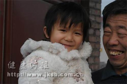 2月5日上午,健康時報記者專程趕到孝義市郊區(qū)小杰的家。小杰正在院子里玩耍。她看到跟記者一起來的劉克戰(zhàn),扭頭就跑,鉆進了姥爺?shù)膽驯А?/p>