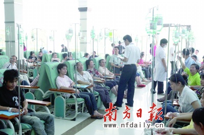 昨天上午11時(shí)許,記者趕到樟木頭醫(yī)院時(shí),該院的輸液大廳坐滿了光明毛織廠員工,他們正在打點(diǎn)滴。樟木頭鎮(zhèn)政府的幾位領(lǐng)導(dǎo)正在現(xiàn)場(chǎng)問寒問暖。據(jù)記者觀察,該輸液大廳的8排輸液椅子都坐滿病號(hào),共100多人,其中少數(shù)人不是光明毛織廠的員工。