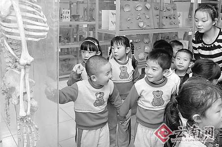 “這是什么骨頭?”昨日,在昆明醫(yī)學院人體解剖學標本陳列室里,面對浸泡在福爾馬林中的人體器官,云南師范大學幼兒園250多名孩子提出各種各樣的問題。作為“生命、生存、生活”教育的內(nèi)容之一,云師大幼兒園希望能通過此次參觀讓孩子們更直觀地認識自己的身體,樹立正確的觀念。此舉得到部分家長的支持,卻受到部分心理學家的反對。