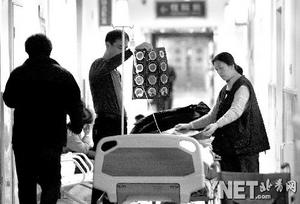 記者看到,急診科搶救室里里外外都躺著病人。病床上大多是滿臉憔悴的老年患者,他們被各種搶救儀器和親屬、子女們包圍著。而搶救室外的樓道里,還有四五位病人躺在臨時(shí)病床上輸液。此外,觀察室和監(jiān)護(hù)室外的樓道里也被加床患者擠滿了!皳尵仁、觀察室、監(jiān)護(hù)室里連加床全都住滿了,”急診科值班大夫李南告訴記者,“我們實(shí)在沒辦法,只能在樓道里加床!笨墒橇硗庖粋(gè)問題又出現(xiàn)了,呼吸機(jī)、監(jiān)護(hù)儀都不夠用,患者用平車也被占滿了,一些重病號(hào)只能先坐著輸液。據(jù)了解,這些不得不在醫(yī)院里過年的患者主要是心腦血管病人和呼吸系統(tǒng)病人。