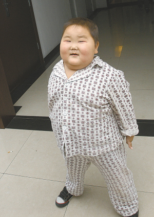 6歲的博博150斤重,眼睛瞇成了一條縫,走路都走不動了,真的像電視劇里大頭娃娃一樣?墒撬麉s沒有大頭娃娃的快樂,胖成這樣是因?yàn)橐荒陙硭虿〕约に厮,而這一切都源于他在5歲時(shí)不幸患上了腎病綜合癥。