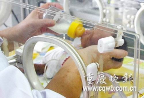醫(yī)生說(shuō),入院后的前幾天,強(qiáng)強(qiáng)3次出現(xiàn)呼吸困難,好在都化險(xiǎn)為夷。醫(yī)生介紹,強(qiáng)強(qiáng)一開(kāi)始不能像其他孩子一樣正常吃奶,只能通過(guò)靜脈給孩子補(bǔ)充營(yíng)養(yǎng),隨后,護(hù)士們就用最小號(hào)的奶嘴給孩子喂奶,從最初的每次0.5毫升、0.8毫升到今天的7、8毫升,強(qiáng)強(qiáng)現(xiàn)在已能自己用嘴吸奶了,腸胃系統(tǒng)已完全適應(yīng)外來(lái)營(yíng)養(yǎng)。