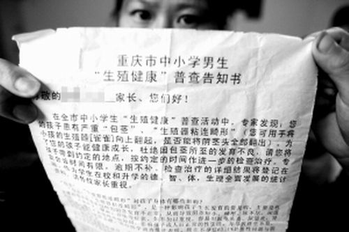 實在忍不住了,小津沖進廁所小便。小便出來,他眼角充盈著淚水!斑痛哇?”父親關切地問。小津點點頭,小心坐到座位上。幾天前,小津在學校被“專家”檢查出包皮有問題,隨后在武隆縣白馬鎮(zhèn)計生站被“專家”進行了包皮手術。武隆縣計生委表示,被動手術的學生一共132例,均與他們無關。