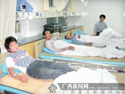 小楊告訴記者,出現(xiàn)中毒癥狀后,林場負(fù)責(zé)人就立即通知了120急救中心。晚上7時30分左右,有中毒癥狀的工友就陸續(xù)被送到南寧市第二人民醫(yī)院了!拔沂峭砩8時許來到醫(yī)院的”。