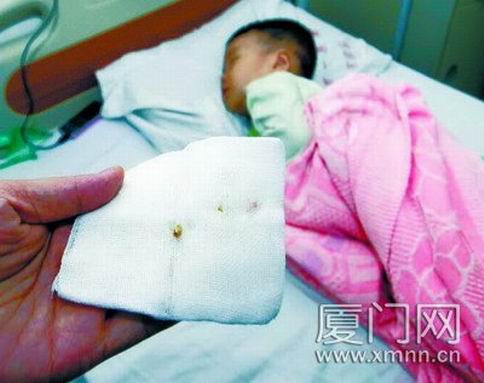 就是這塊寬0.3厘米的碎骨,堵在寶寶0.6厘米左右寬的氣管里。