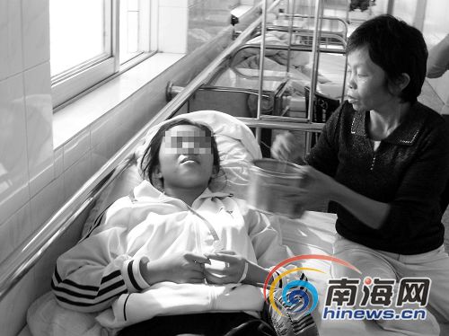 11月17日下午,記者在海南省農(nóng)墾總局醫(yī)院神經(jīng)內(nèi)科病房看到,阿霞的媽媽、姨媽和同學都在一旁照顧阿霞。阿霞目光呆滯,嘴里不時地喃喃自語說:“我好奇心強,我要找知音陪我去逛街,我有好多話要說,我想找回我的記憶……”阿霞的媽媽和同學告訴記者,阿霞讀書很刻苦,成績都排在前幾位,她一直向往重點高中,還夢想著考上重點大學,考試總想要考第一。