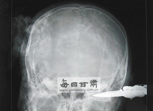 拍片顯示水果刀插在后腦處。記者 李桐葉 攝