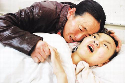 母親撫摸著女兒泣不成聲