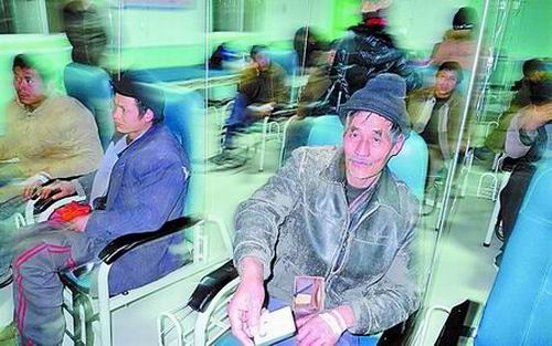 昨晚7時許,祭城醫(yī)院的內(nèi)科病房內(nèi),突然擁進二十幾個民工。“每個人的臉色都很差,有的還不停地嘔吐!痹撛阂蛔o士說。