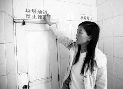 在李嬌的指引下,記者來到事發(fā)現(xiàn)場,此時(shí),“肇事”的垃圾通道門上已經(jīng)重新上了鎖,并掛上“垃圾通道禁止使用”的警示標(biāo)語!斑@是出事后醫(yī)院設(shè)置的!崩顙沙鍪玖耸掳l(fā)當(dāng)時(shí)拍下的照片,“醫(yī)院的做法實(shí)則已經(jīng)承認(rèn)過錯(cuò),但就是不肯和我們協(xié)商賠償!