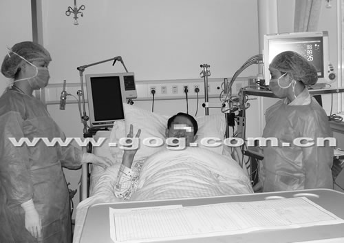 “由于不能開口說話,他在書寫板上給寫了‘醫(yī)生我能活嗎?’幾個(gè)字,”日夜在周某身邊看護(hù)的護(hù)士長(zhǎng)張桂屏回憶說。當(dāng)時(shí)在場(chǎng)的醫(yī)生護(hù)士都安慰他:“能活,北京的專家也在,全國(guó)人民都在救你,你要堅(jiān)強(qiáng)!甭牭结t(yī)生們這樣說,周某當(dāng)時(shí)感動(dòng)得熱淚盈眶。