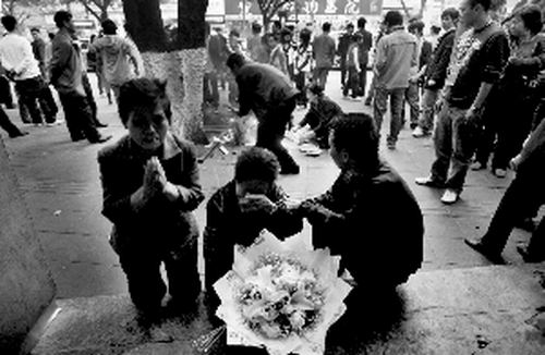 圍觀的群眾目擊老人悲傷,均嘆息照片中年輕人過(guò)早失去寶貴的生命。記者還發(fā)現(xiàn),隨家屬到場(chǎng)送別思偉的還有不少年輕男女。有穿黑色便裝的,也有穿學(xué)校服裝的。一名學(xué)生流著淚說(shuō),思偉是在市第四十九中畢業(yè)的,怎么也無(wú)法相信師兄已經(jīng)離開(kāi)他們而去。