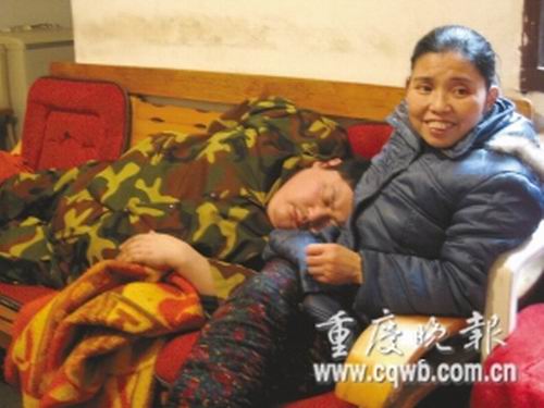 “亮亮,莫睡了,有人來看你了!鼻叭障挛,當記者來到劉曉亮位于楊家坪街道天寶路的家時,他正在客廳木制沙發(fā)上酣睡。身穿迷彩服的他,若不是露出的一雙光腳板,記者還以為是堆在沙發(fā)上的一堆厚棉絮。
