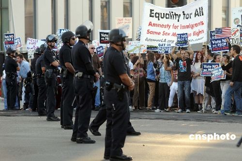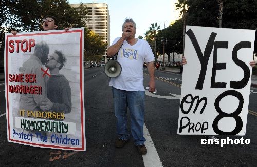 圖:洛杉磯市民為禁止同性戀婚姻而對(duì)立(3)