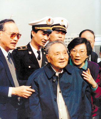 (資料圖)1992年1月19日中午,鄧小平來到深圳皇崗口岸,深情地眺望對岸的香港。(當(dāng)時的小平同志就穿著上圖所展示的這件衣服)