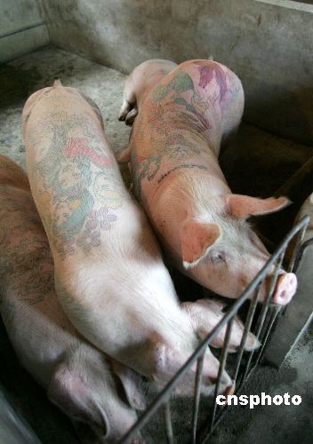 圖:藝術(shù)家給豬紋身 豬皮可賣百萬(2)